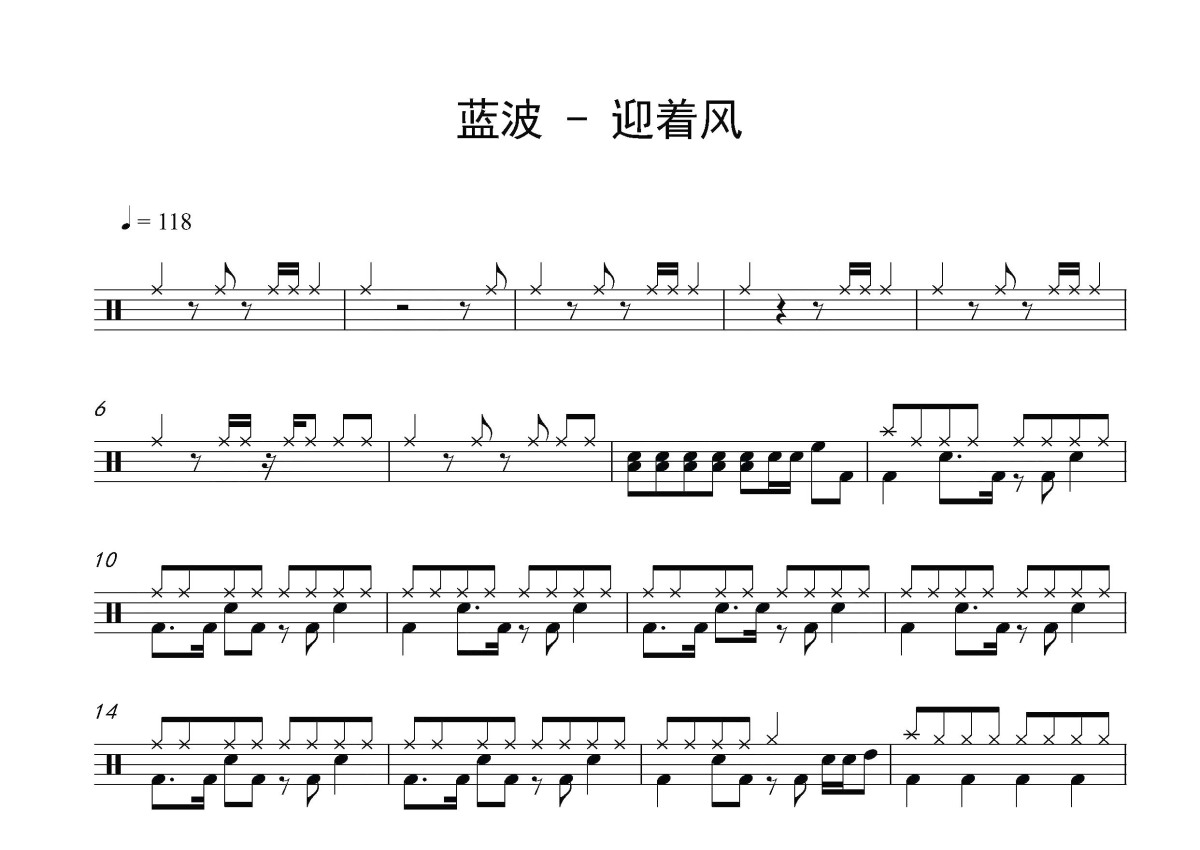 蓝波《迎着风》鼓谱 - 架子鼓谱