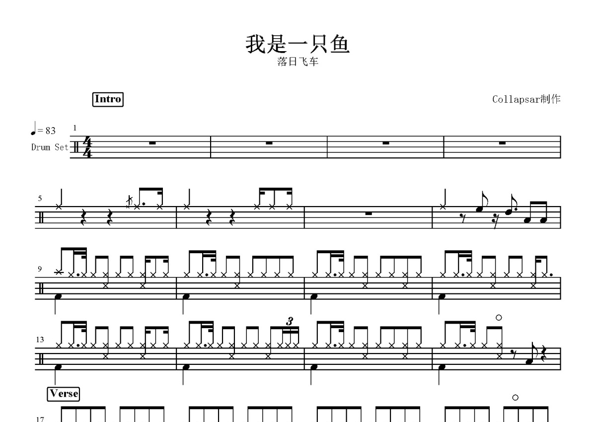 落日飞车《我是一只鱼》鼓谱 - 架子鼓谱