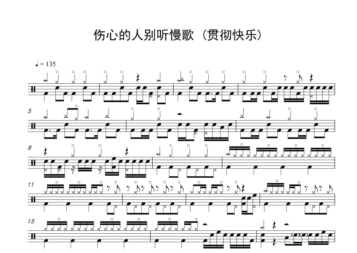 李科颖《伤心的人别听慢歌》鼓谱 - 架子鼓谱