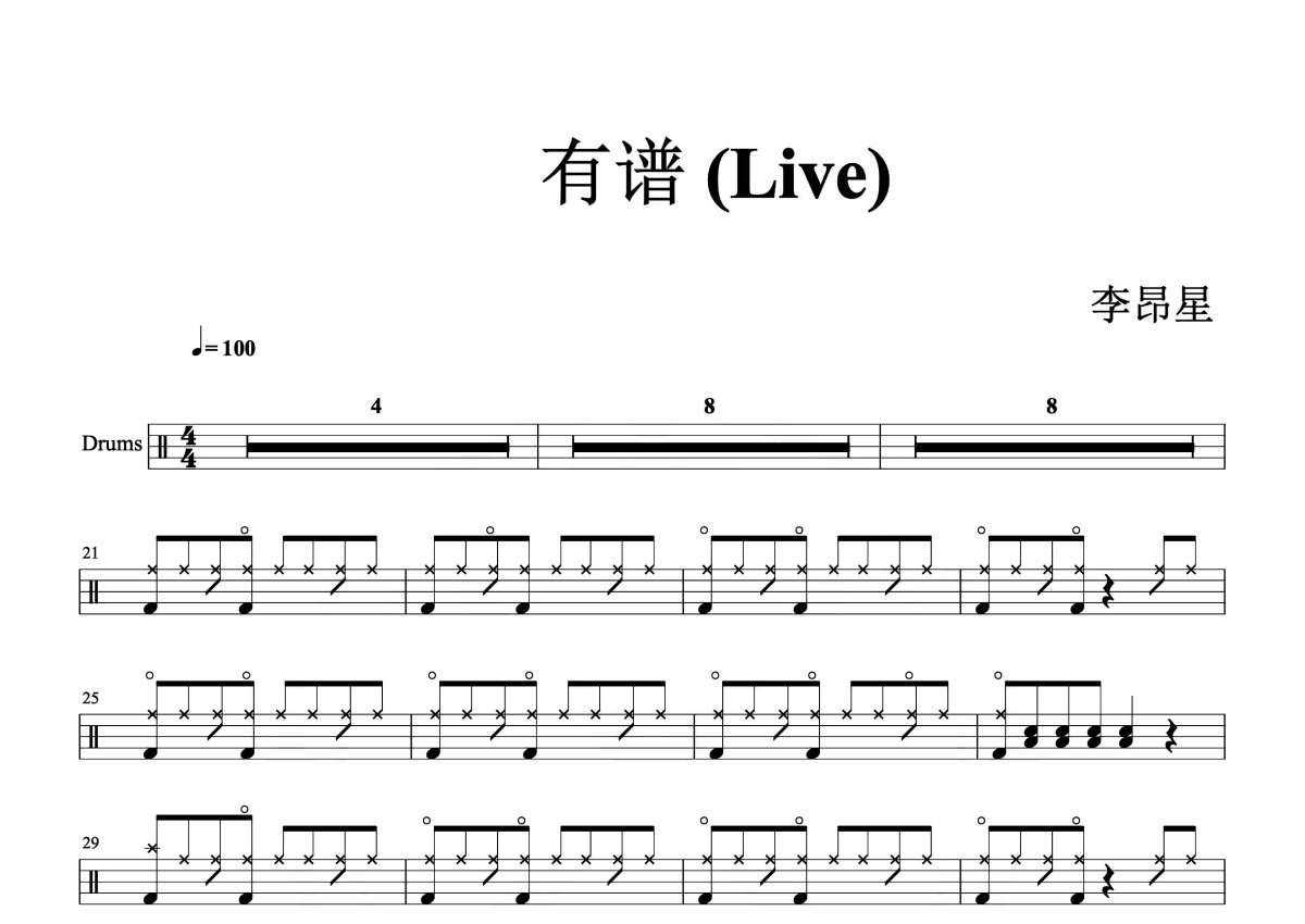 李昂星《有谱》鼓谱 - 架子鼓谱