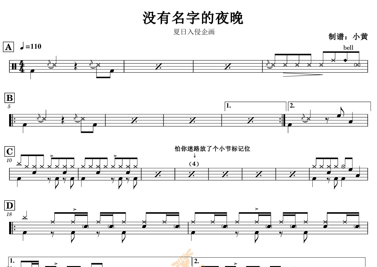 夏日入侵企画《没有名字的夜晚》鼓谱 - 架子鼓谱