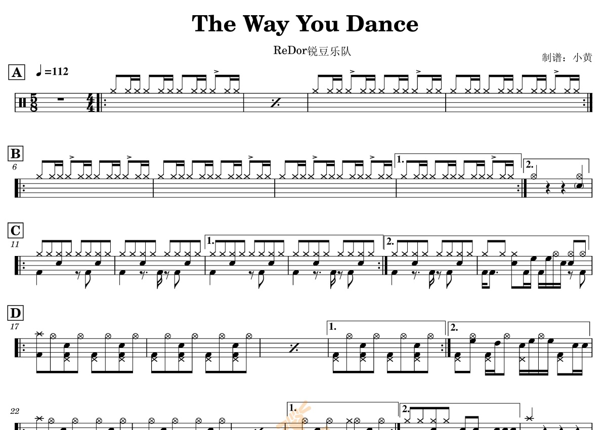 Redor锐豆乐队《The Way You Dance》鼓谱 - 架子鼓谱