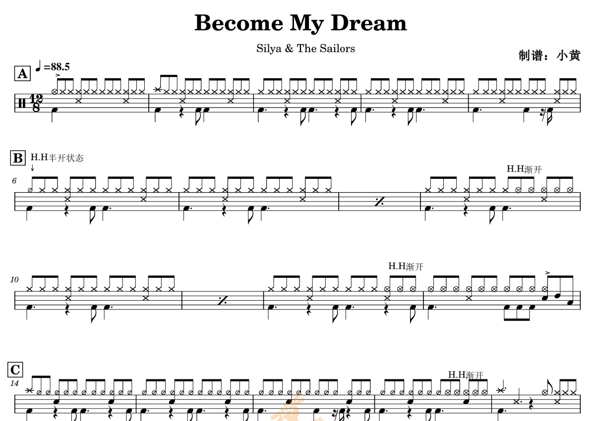 Silya &The Sailors《Become My Dream》鼓谱 - 架子鼓谱