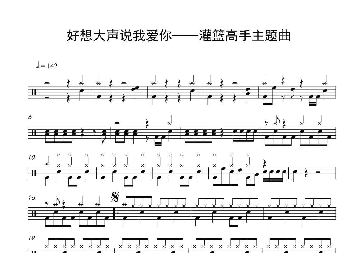 灌篮高手主题曲《好想大声说我爱你》鼓谱 - 架子鼓谱
