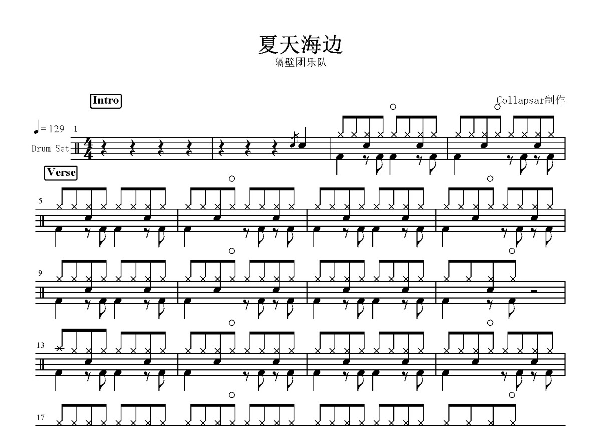 隔壁团乐队《夏天海边》鼓谱 - 架子鼓谱