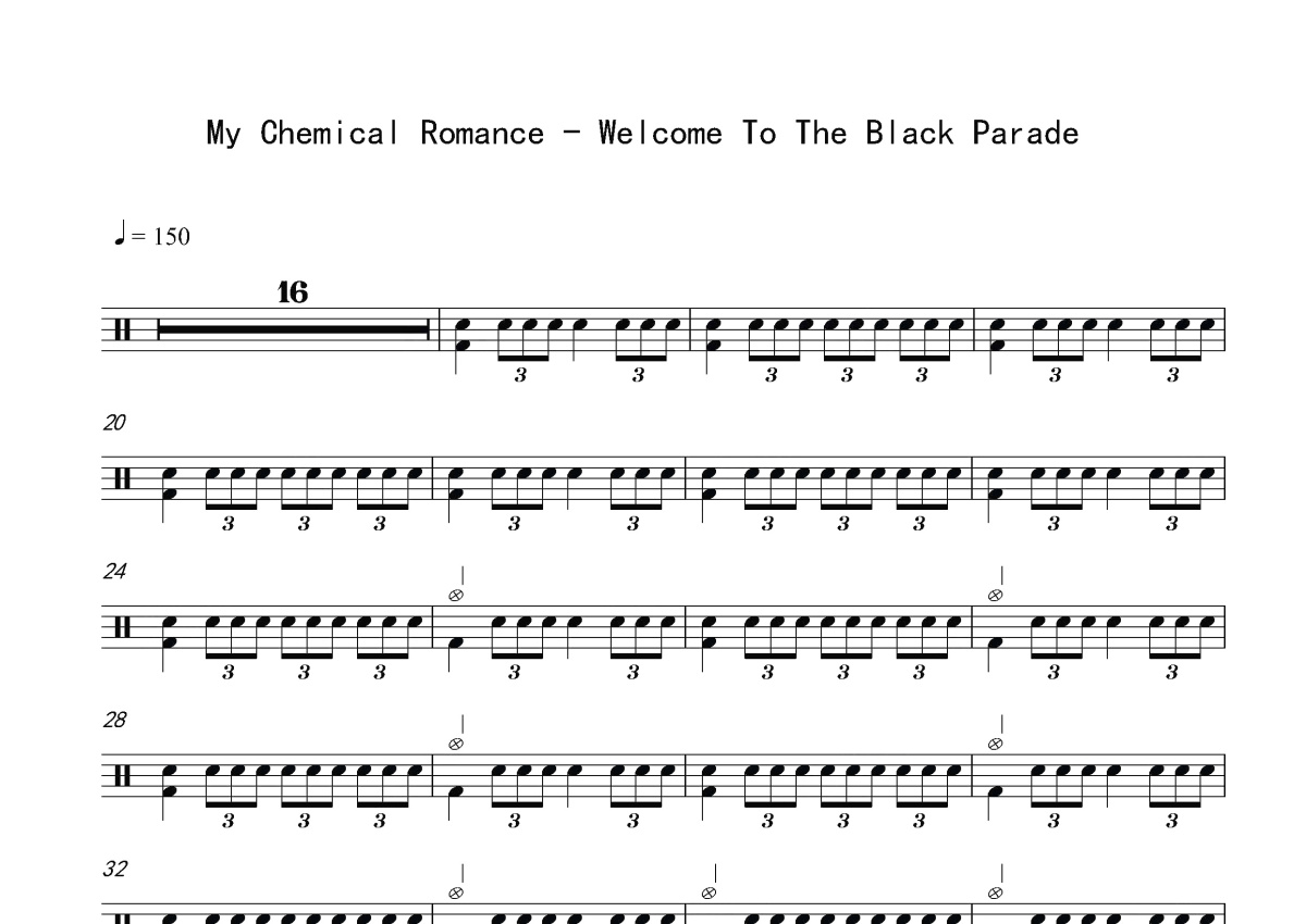 《Welcome To The Black Parade》是My Chemical Romance演唱的一首歌曲,这份鼓谱共有四张高清图谱,图谱由 @打鼓谱 编配上传,图谱使用五线谱编配,使用这份Welcome To The Black Parade架子鼓谱,你将能够轻松地敲打出这首My Chemical Romance的Welcome To The Black Parade,快来尝试吧。Welcome to the Black Parade是乐队My Chemical Romance专辑The Black Parade的第五曲目,也是第一支发行单曲。