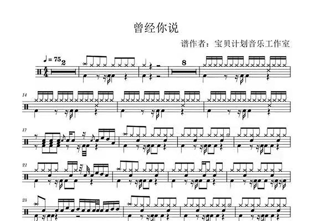 《曾经你说》,这份鼓谱共有两张高清图谱,图谱由 @打鼓谱 编配上传,图谱使用五线谱编配,使用这份曾经你说架子鼓谱,你将能够轻松地敲打出这首曾经你说,快来尝试吧。
