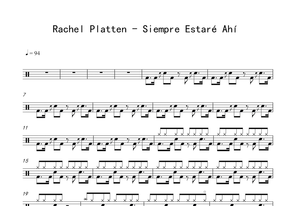 Rachel Platten《Siempre Estaré Ahí》鼓谱 - 架子鼓谱