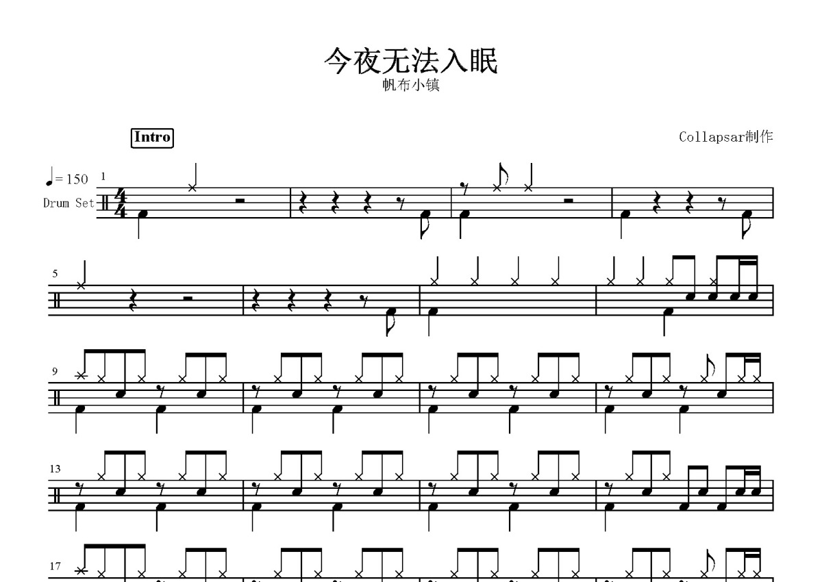 帆布小镇《今夜无法入眠》鼓谱 - 架子鼓谱