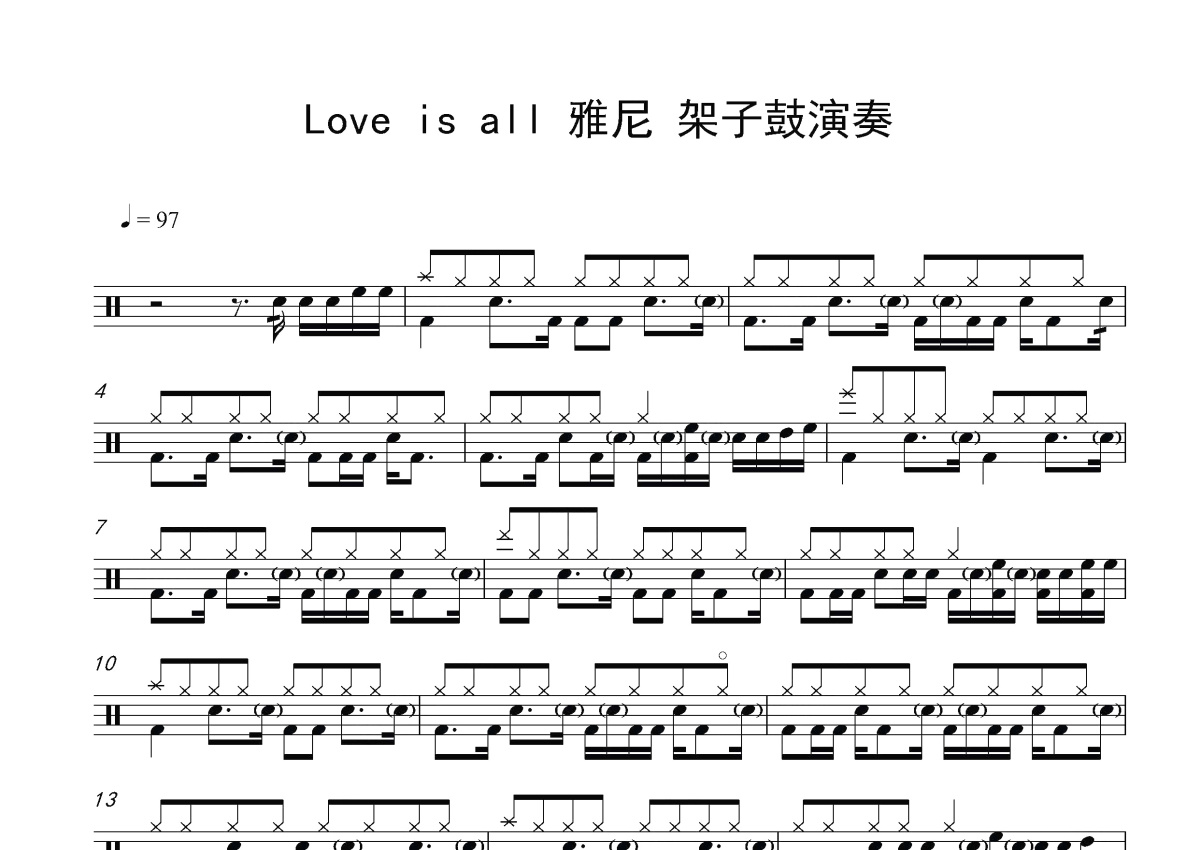 Yanni雅尼《Love is all》鼓谱 - 架子鼓谱