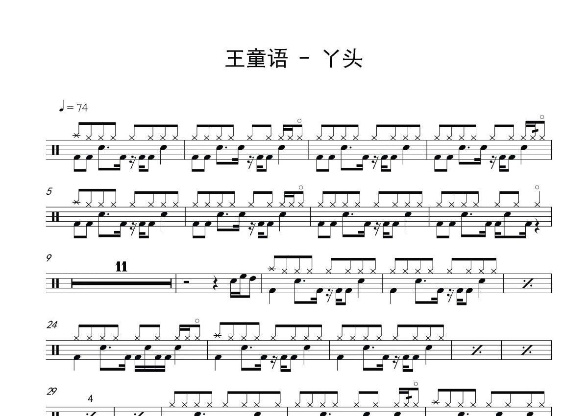 《丫头》是王童语演唱的一首歌曲,这份鼓谱共有两张高清图谱,图谱由 @打鼓谱 编配上传,图谱使用五线谱编配,使用这份丫头架子鼓谱,你将能够轻松地敲打出这首王童语的丫头,快来尝试吧。《丫头》是王童语主唱歌曲。 王童语,国内著名音乐制作人、词曲作者。