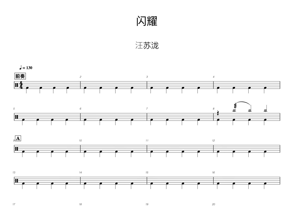 汪苏泷《闪耀》鼓谱 - 架子鼓谱