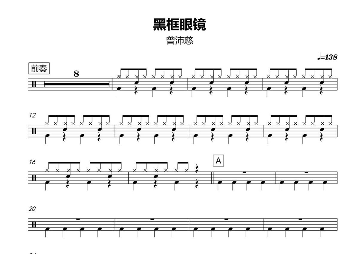 曾沛慈《黑框眼镜》鼓谱 - 架子鼓谱