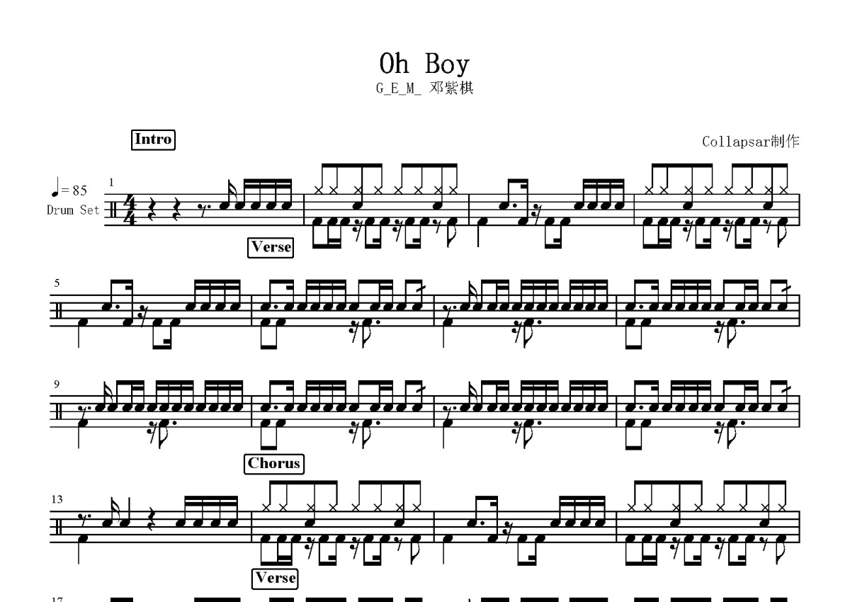 邓紫棋《Oh Boy》鼓谱 - 架子鼓谱