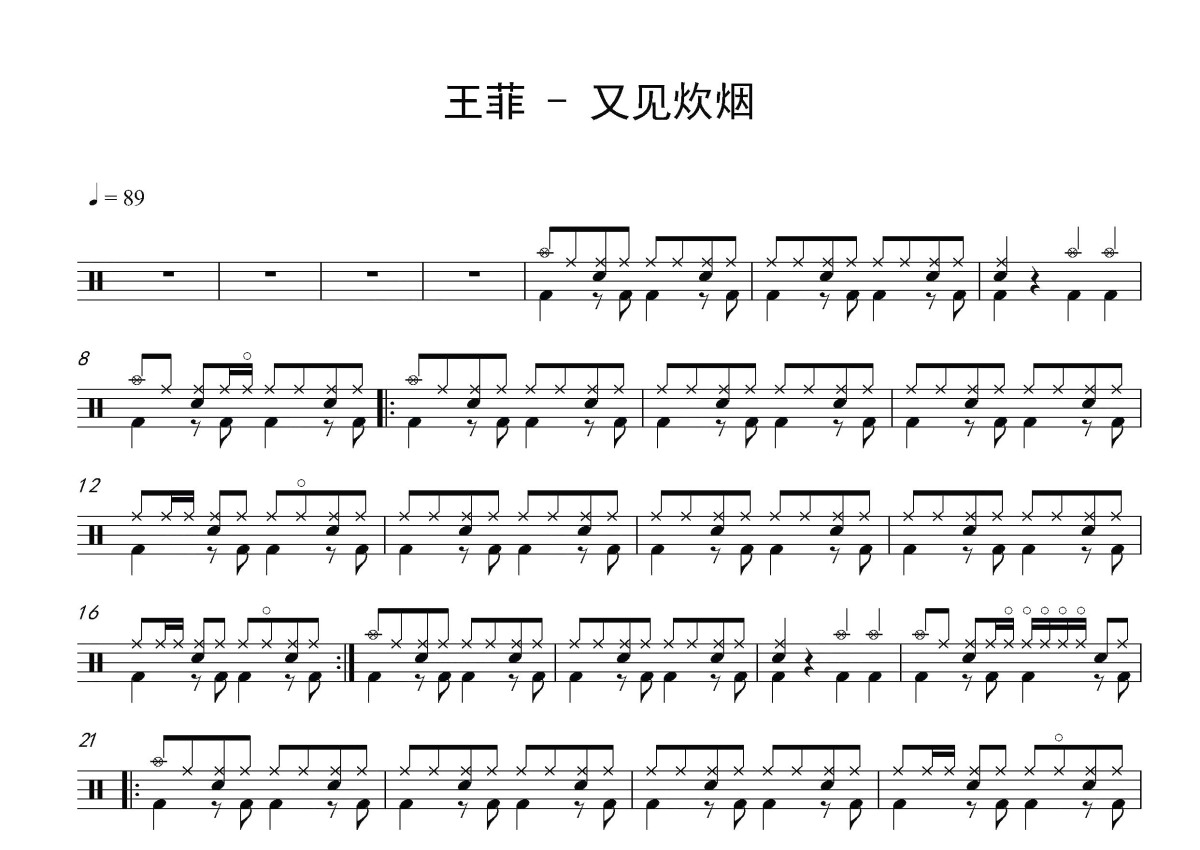 王菲《又见炊烟》鼓谱 - 架子鼓谱
