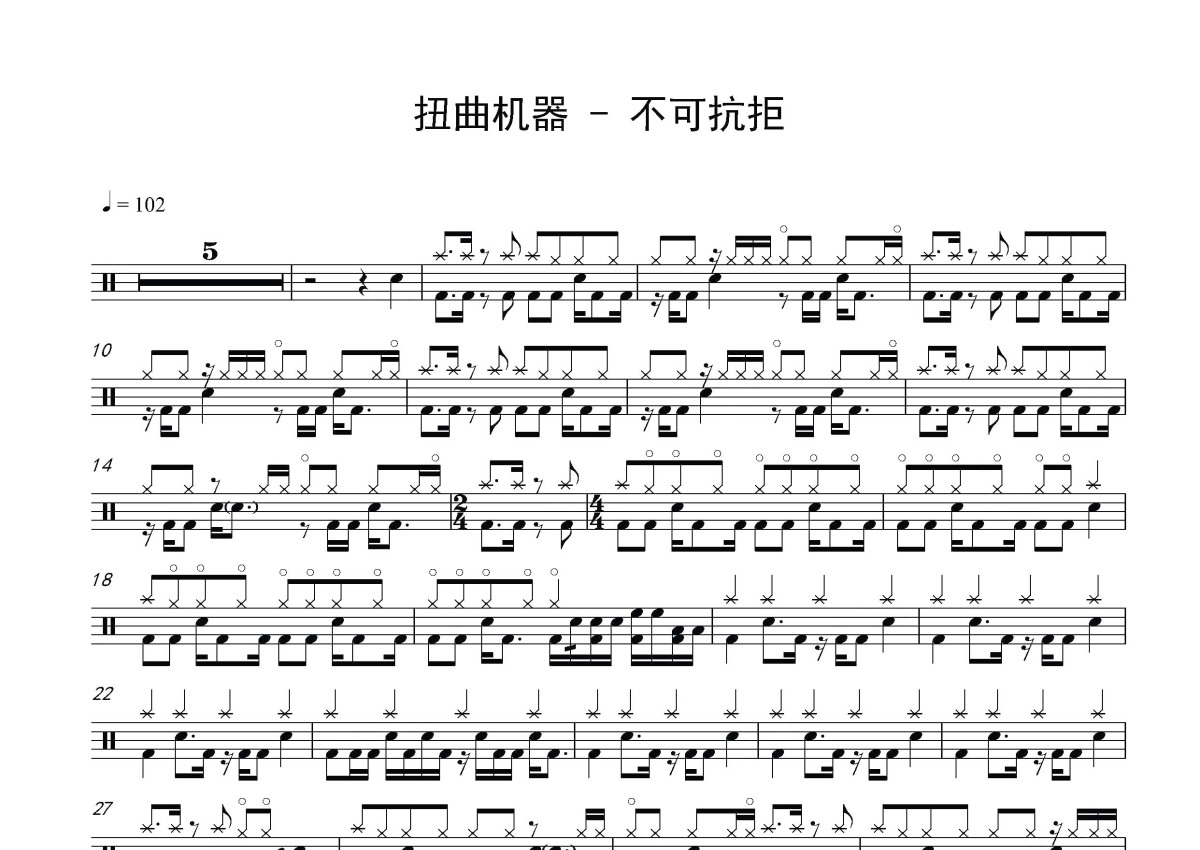 扭曲机器乐队《不可抗拒》鼓谱 - 架子鼓谱