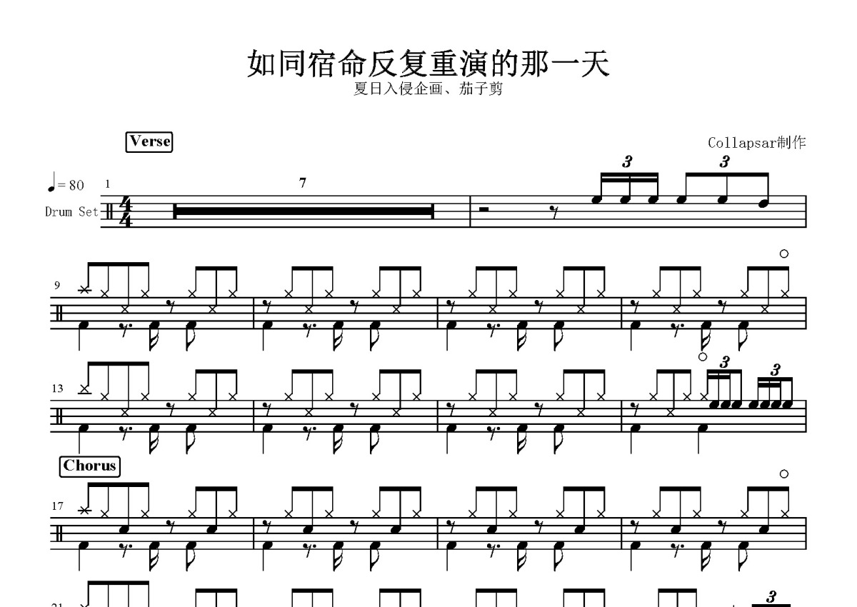 夏日入侵企画/雪茄剪《如同宿命反复重演的那一天》鼓谱 - 架子鼓谱