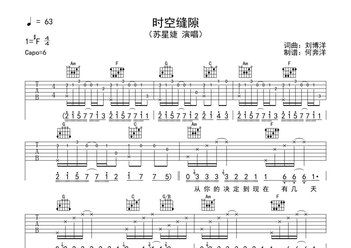 苏星婕《时空缝隙》吉他谱 - C调弹唱六线谱