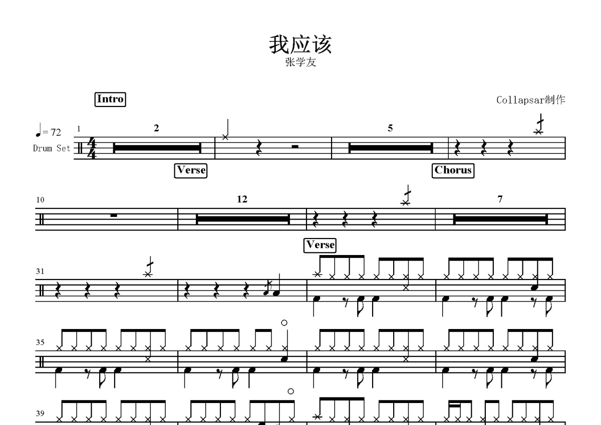 张学友《我应该》鼓谱 - 架子鼓谱