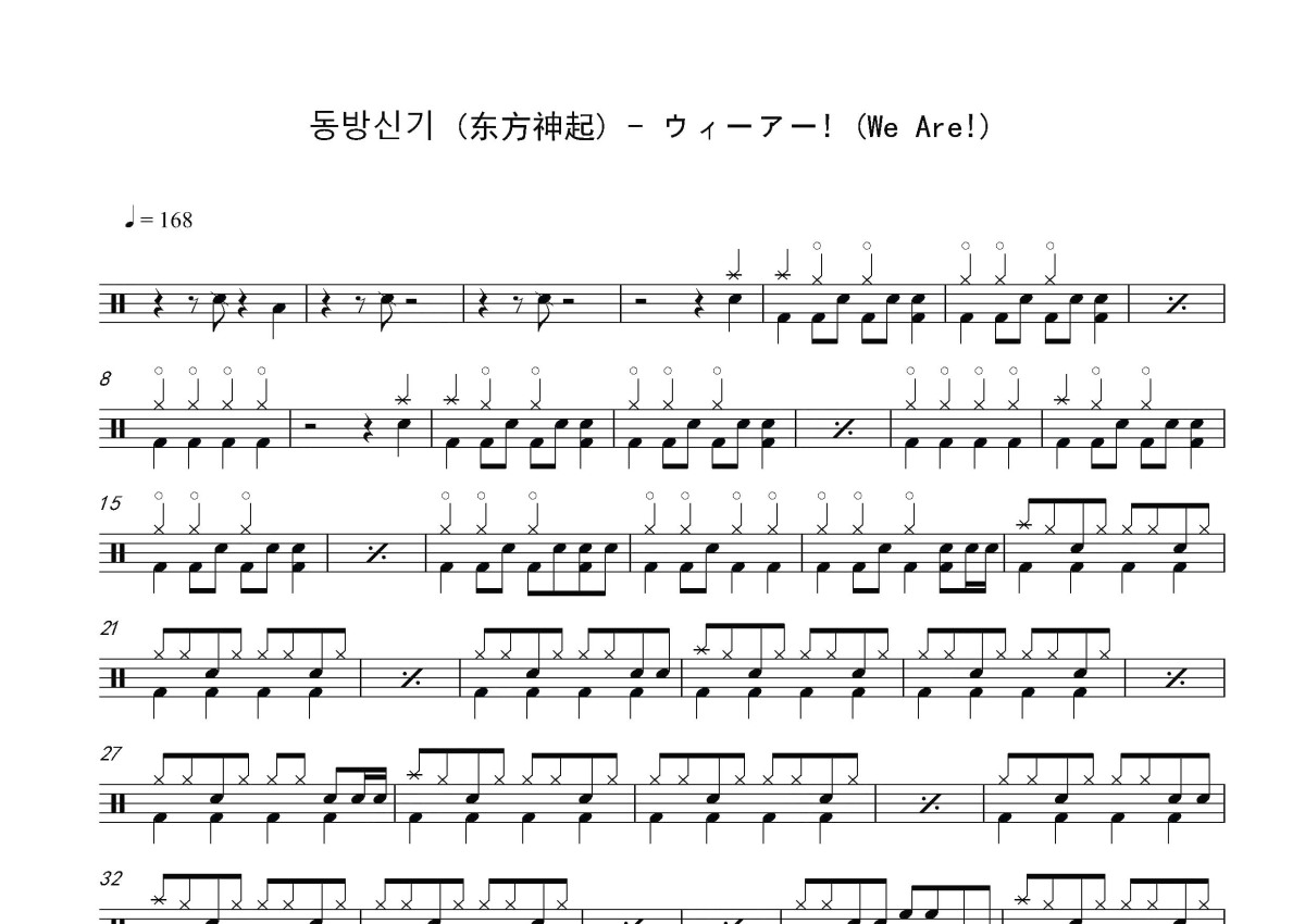 《ウィーアー! We Are!)》是동방신기 (东方神起)演唱的一首歌曲,这份鼓谱共有两张高清图谱,图谱由 @打鼓谱 编配上传,图谱使用五线谱编配,使用这份ウィーアー! We Are!)架子鼓谱,你将能够轻松地敲打出这首동방신기 (东方神起)的ウィーアー! We Are!),快来尝试吧。《We Are!》(ウィーアー! )是北谷洋演唱的歌曲,由籐林圣子作词,田中公平作曲,电视动画《航海王》第1-47集以及剧场版《航海王:黄金岛冒险》片头曲。该曲收录在2000年发行的专辑《ONE PIECE MUSIC&SONG Collection 2》中。
