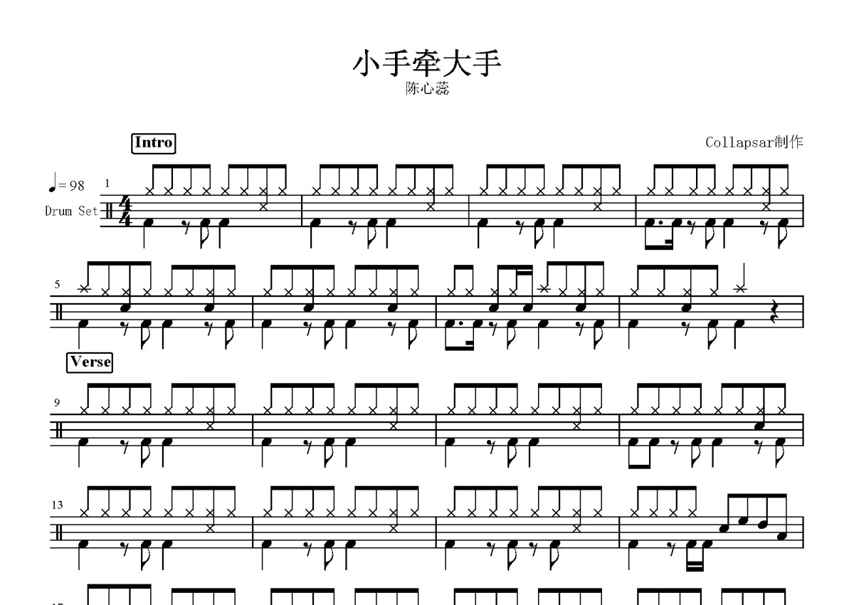 陈心蕊《小手牵大手》鼓谱 - 架子鼓谱