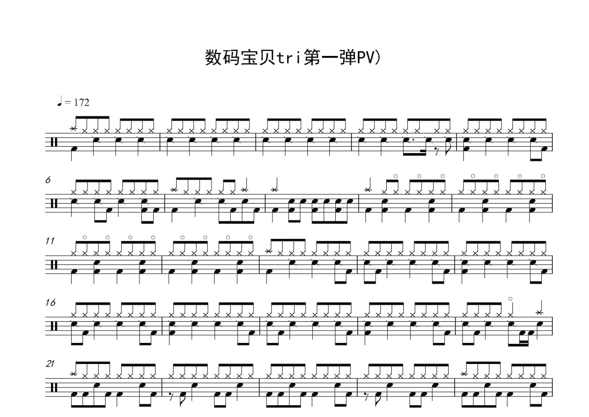 数码宝贝tri第一弹PV《数码宝贝》鼓谱 - 架子鼓谱