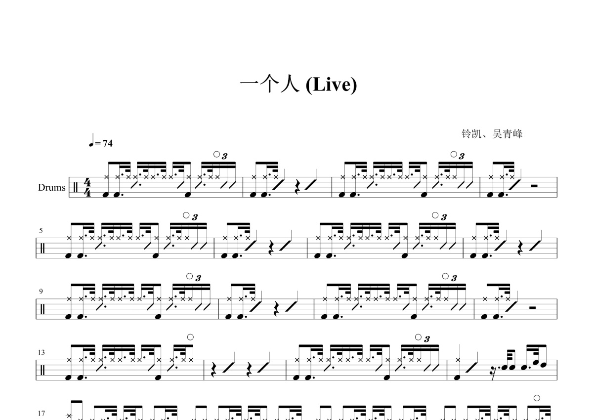 吴青峰/黄玲凯《一个人》鼓谱 - 架子鼓谱
