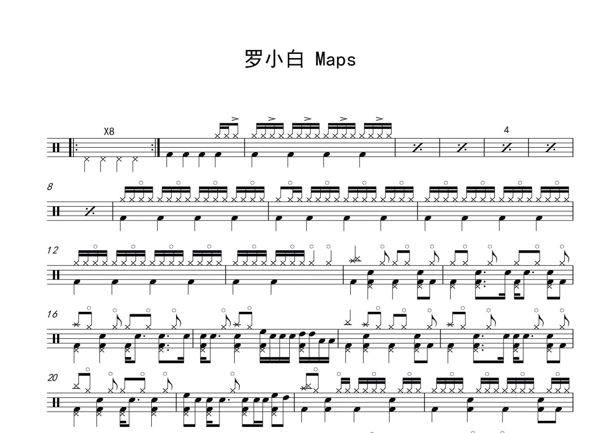 罗小白《Maps》鼓谱 - 架子鼓谱