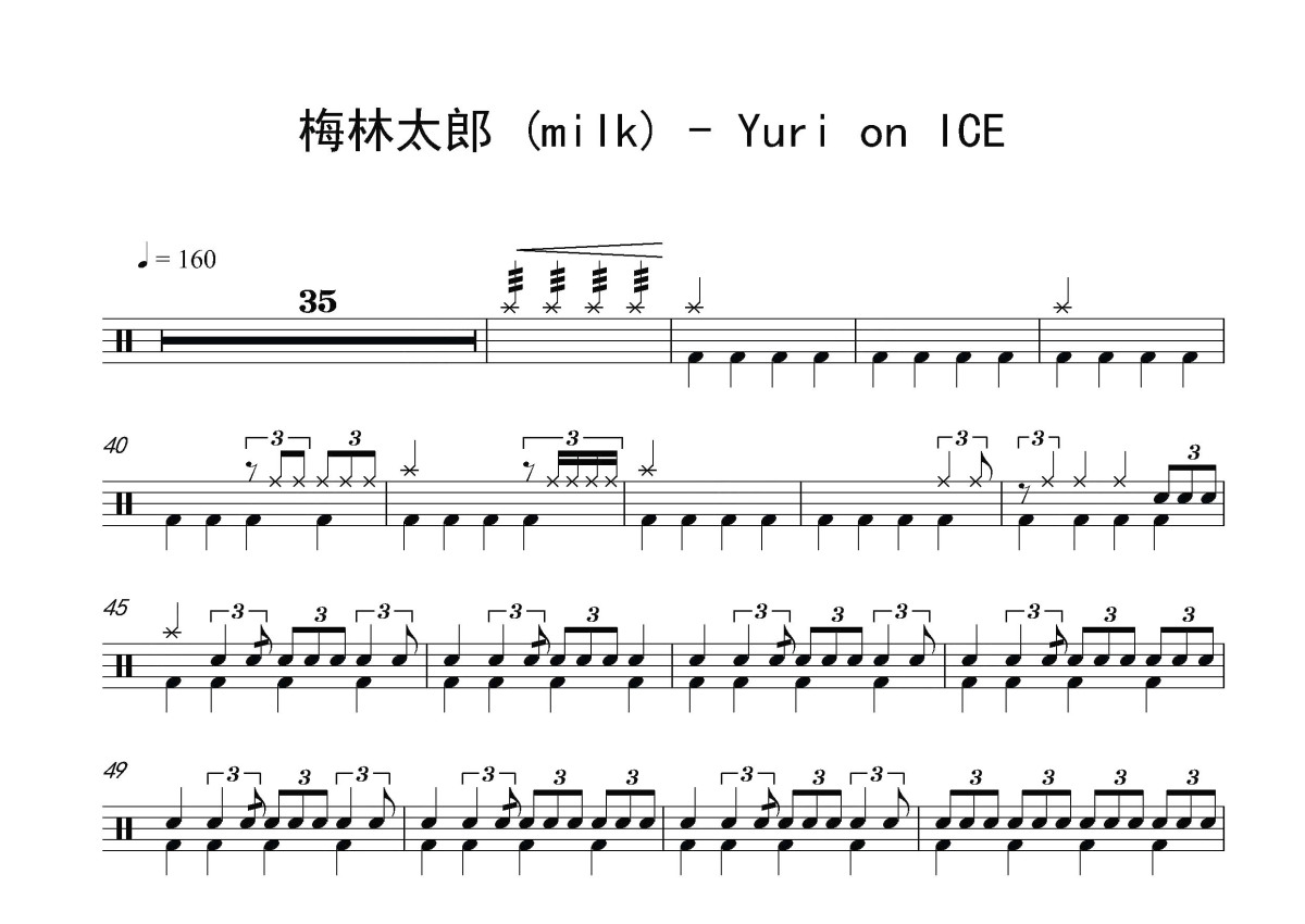 梅林太郎 (milk)《Yuri on ICE》鼓谱 - 架子鼓谱
