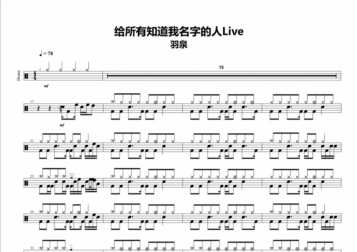 羽泉《给所有知道我名字的人》鼓谱 - 架子鼓谱