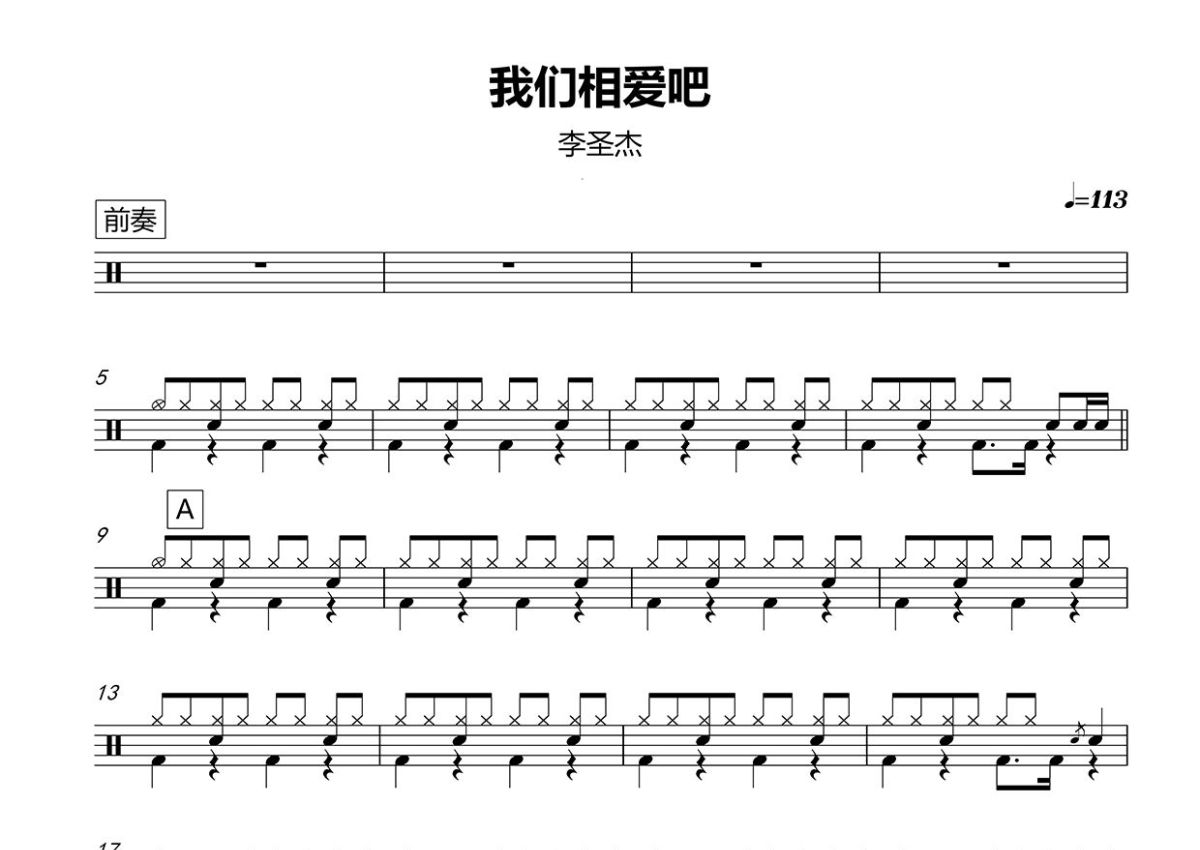 李圣杰《我们相爱吧》鼓谱 - 架子鼓谱