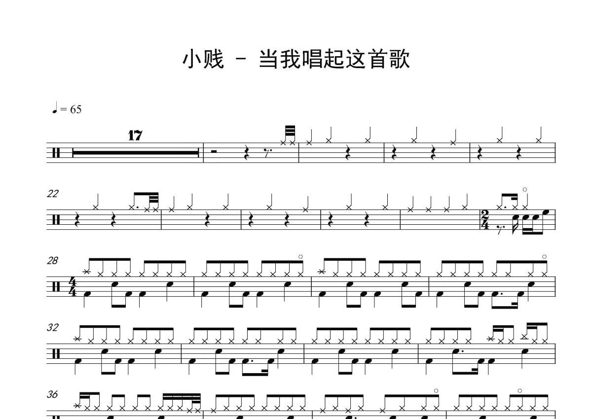 小贱《当我唱起这首歌》鼓谱 - 架子鼓谱