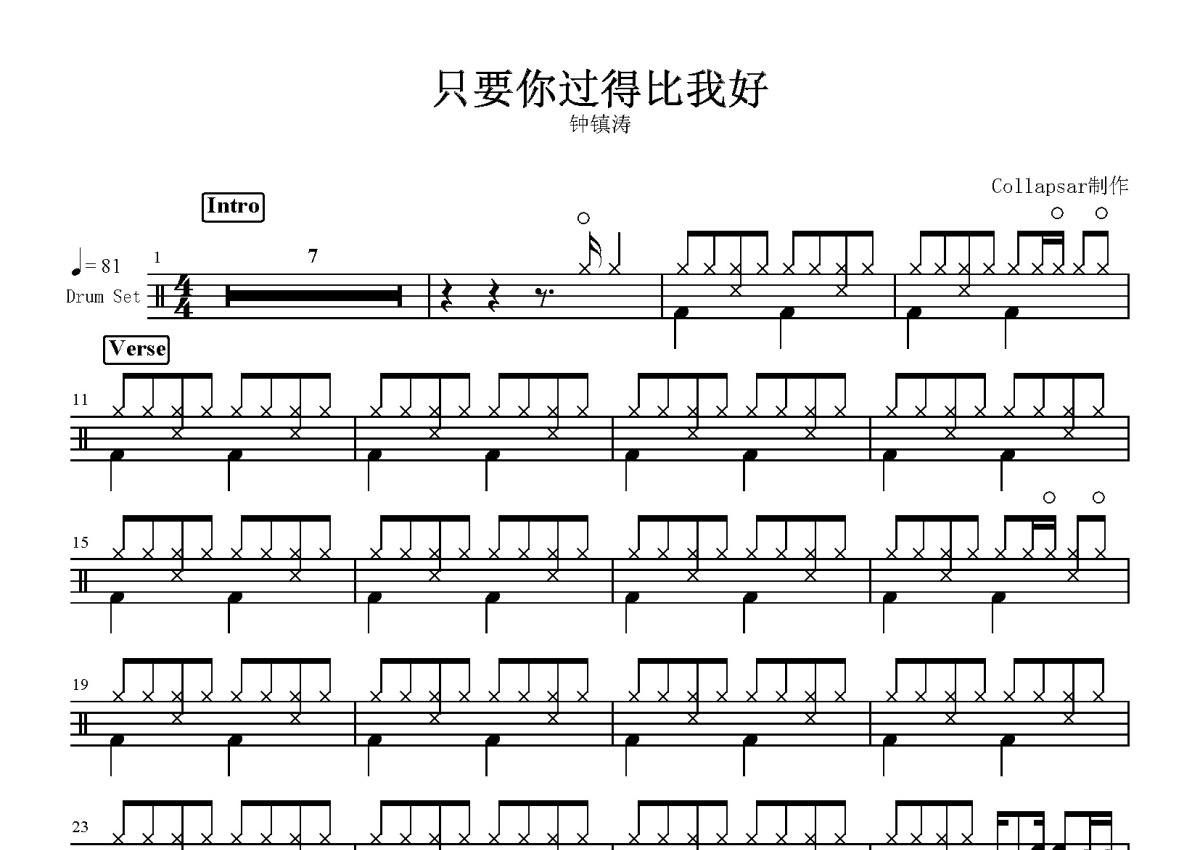 钟镇涛《只要你过得比我好》鼓谱 - 架子鼓谱