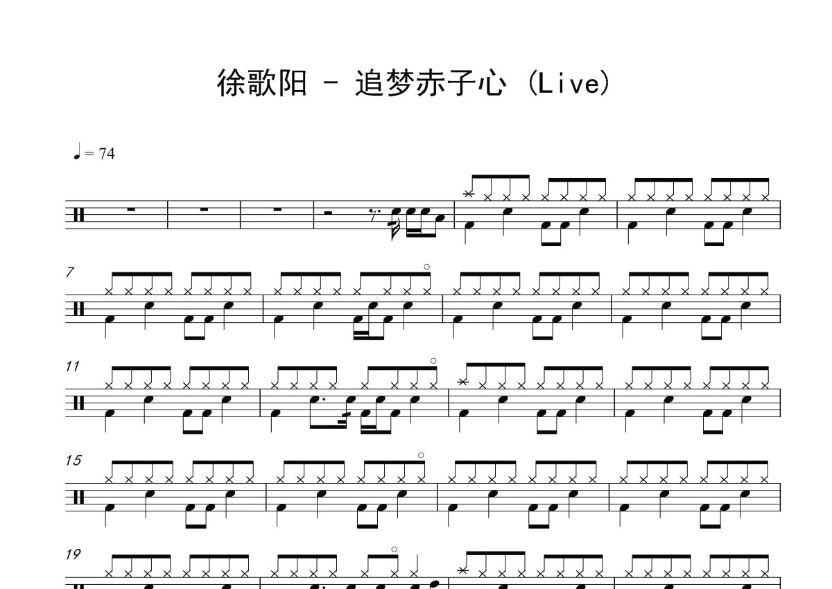 徐歌阳《追梦赤子心》鼓谱 - 架子鼓谱 - live