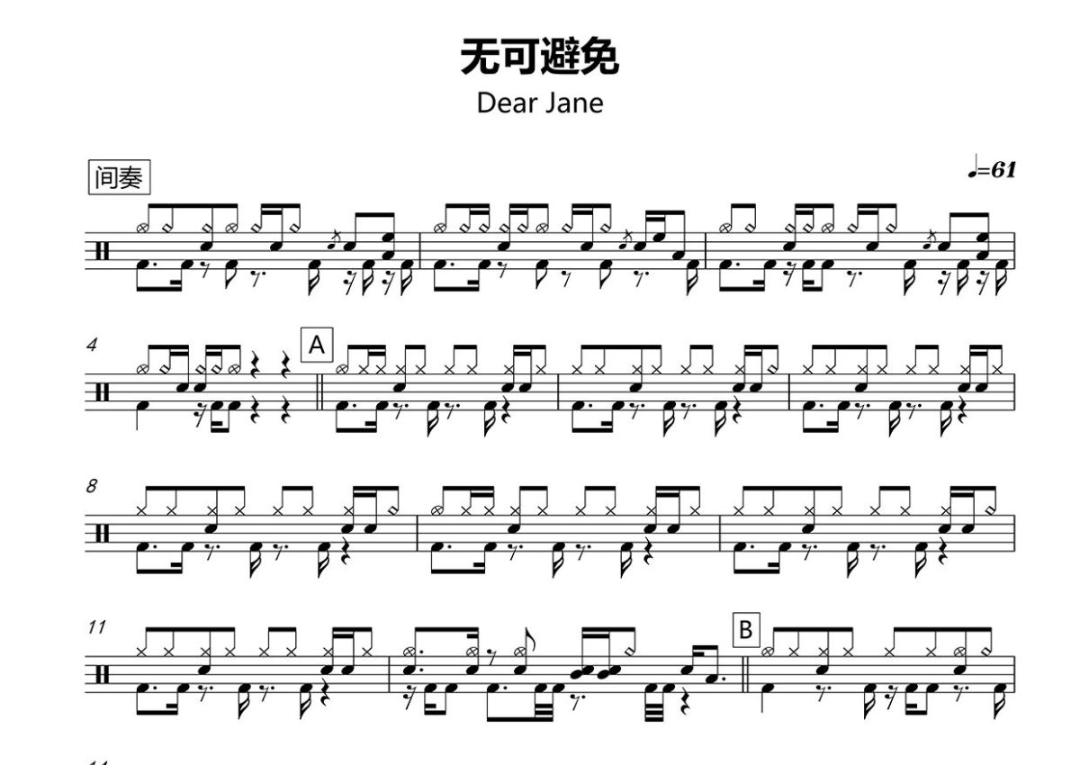 Dear jane《无可避免》鼓谱 - 架子鼓谱