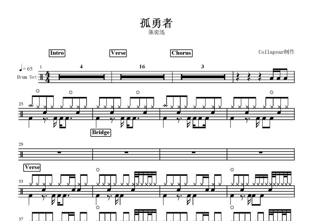 陈奕迅《孤勇者》鼓谱 - 架子鼓谱