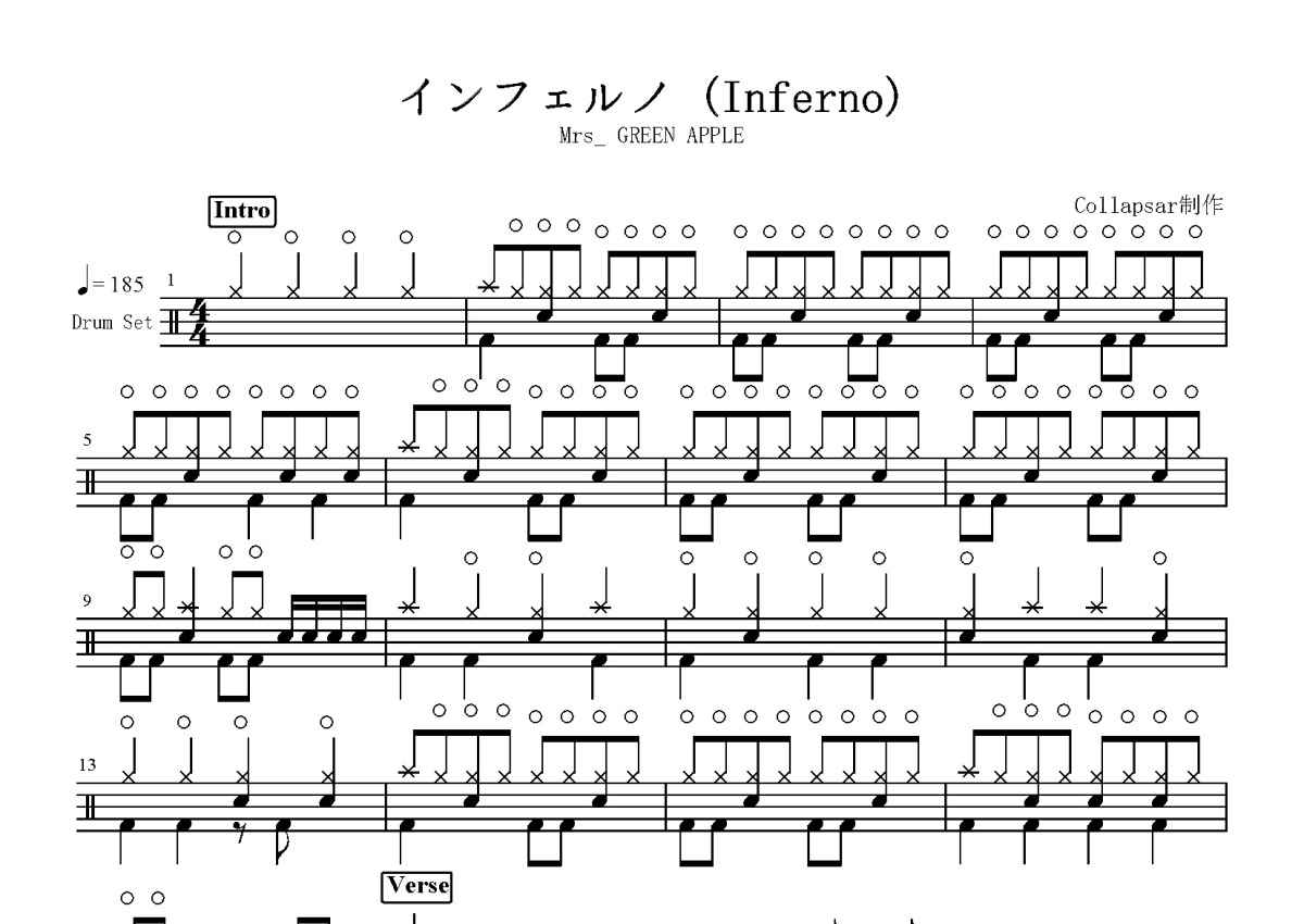 Mrs. GREEN APPLE《インフェルノ》鼓谱 - 架子鼓谱