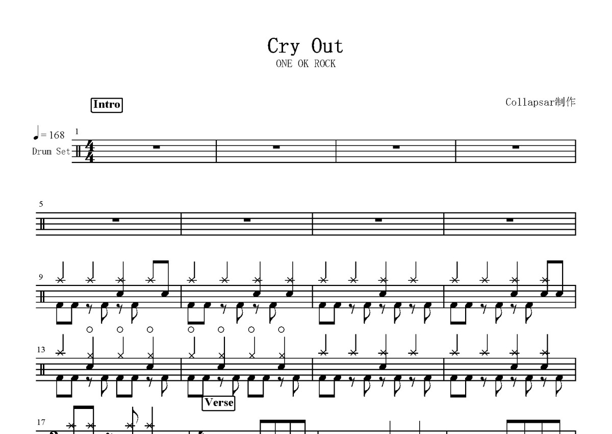 ONE OK ROCK《Cry Out》鼓谱 - 架子鼓谱