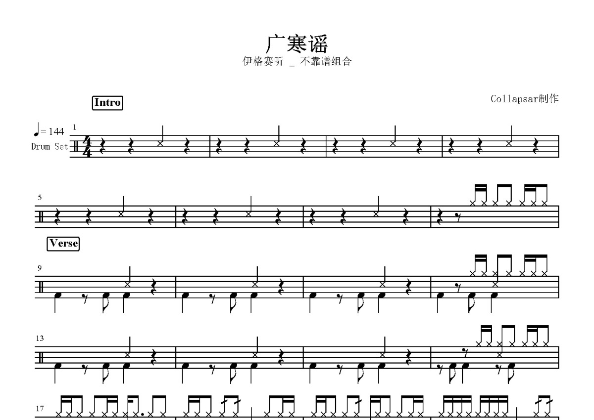 伊格赛听/不靠谱组合《广寒谣》鼓谱 - 架子鼓谱