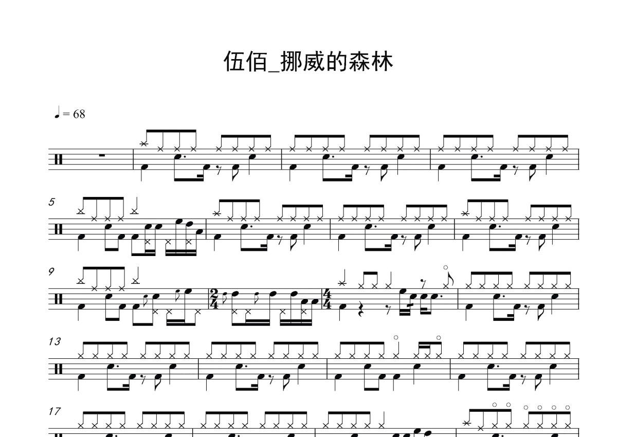 《挪威的森林》是伍佰演唱的一首歌曲,这份鼓谱共有三张高清图谱,图谱由 @打鼓谱 编配上传,图谱使用五线谱编配,使用这份挪威的森林架子鼓谱,你将能够轻松地敲打出这首伍佰的挪威的森林,快来尝试吧。《挪威的森林》是伍佰演唱的一首歌曲,由伍佰作词、作曲,伍佰 & China Blue编曲,收录在伍佰1996年6月18日发行的专辑《爱情的尽头》中。这首歌曲是伍佰的代表作之一。伍佰(Wu Bai),本名吴俊霖,1968年1月14日生于台湾省新北市新店区,中国台湾男歌手、音乐人、吉他手、影视演员、摄影家。