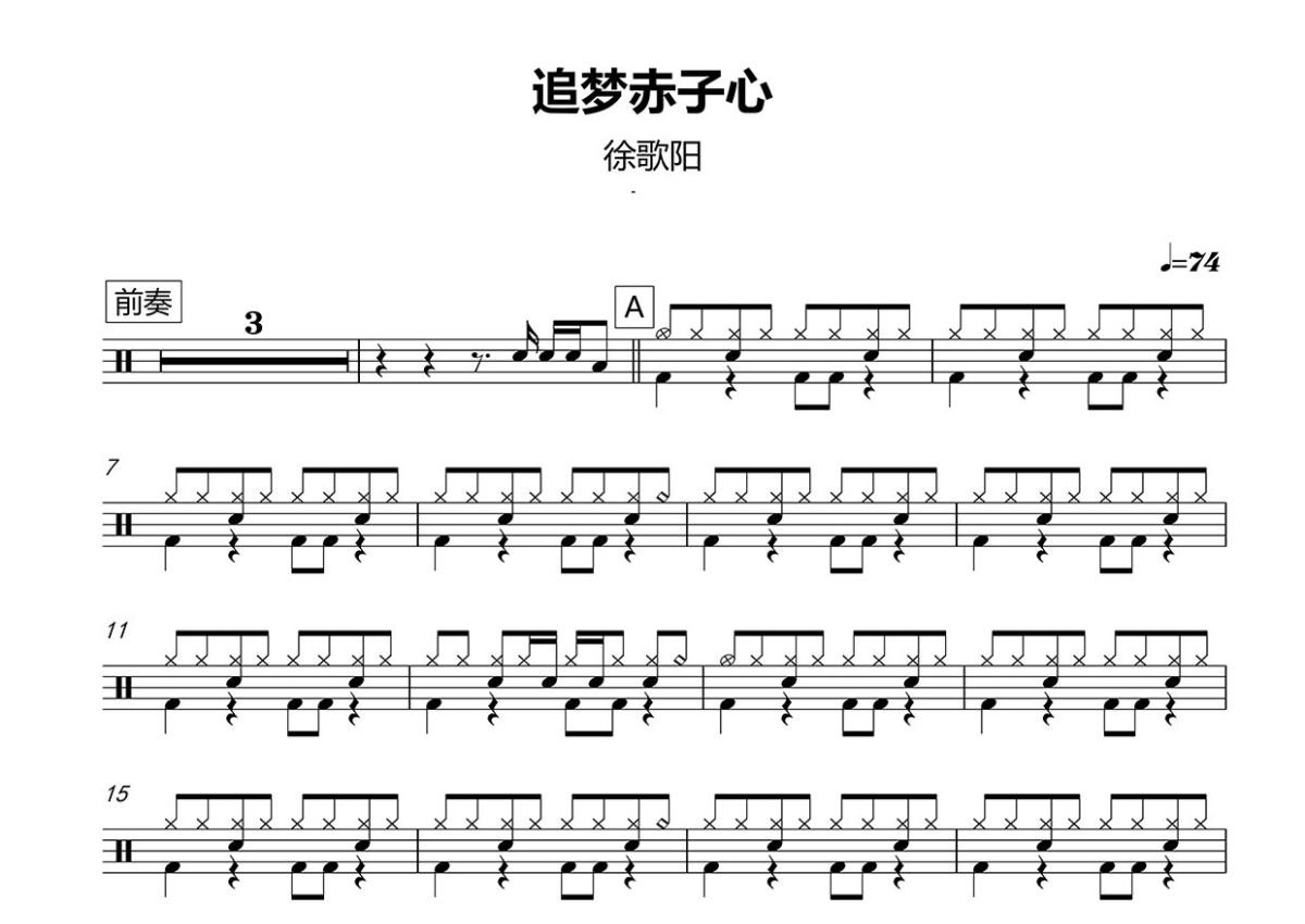 徐歌阳《追梦赤子心》鼓谱 - 架子鼓谱