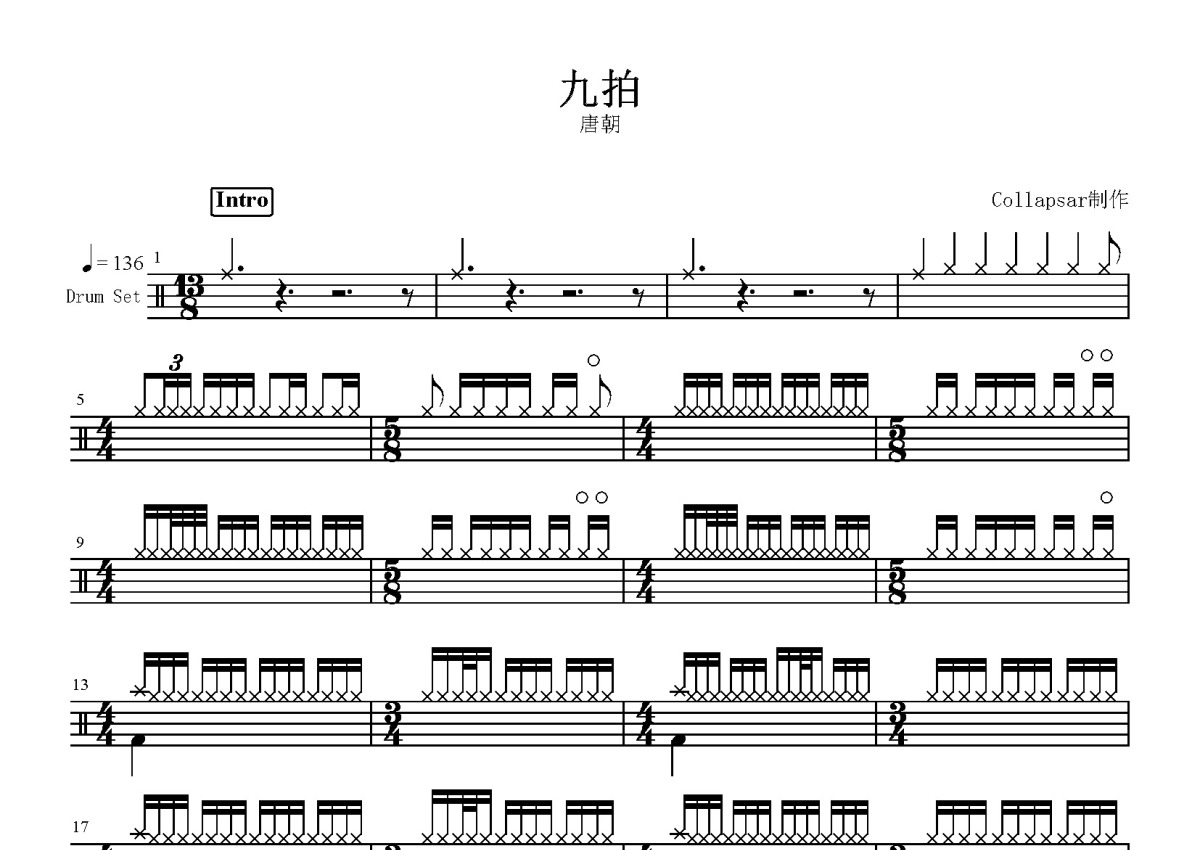 唐朝乐队《九拍》鼓谱 - 架子鼓谱