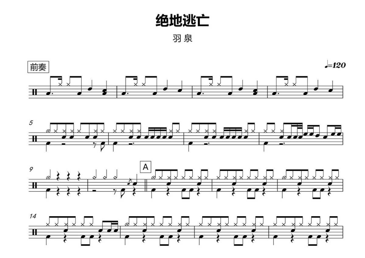 羽泉《绝地逃亡》鼓谱 - 架子鼓谱