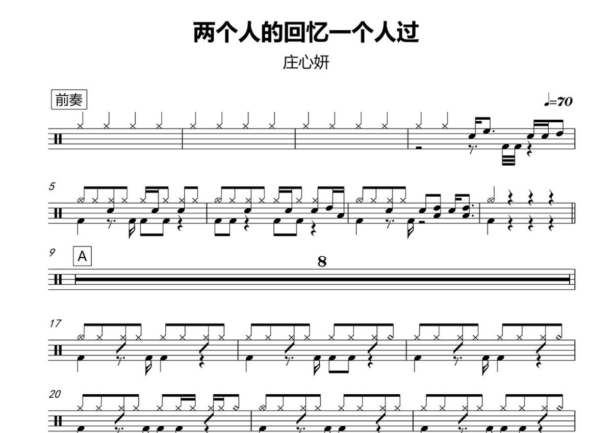 庄心妍《两个人的回忆一个人过》鼓谱 - 架子鼓谱