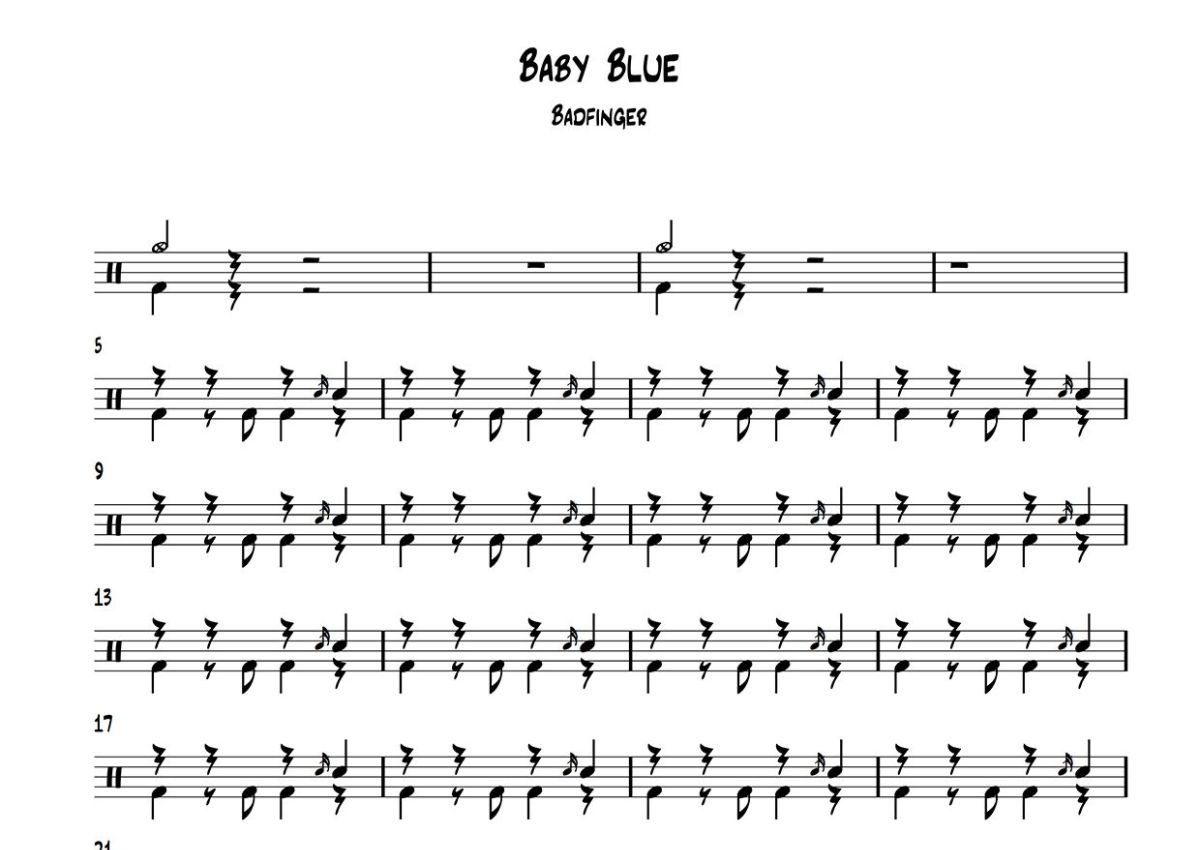 《Baby Blue》是Badfinger演唱的一首歌曲,这份鼓谱共有三张高清图谱,图谱由 @打鼓谱 编配上传,图谱使用五线谱编配,使用这份Baby Blue架子鼓谱,你将能够轻松地敲打出这首Badfinger的Baby Blue,快来尝试吧。Baby blue是由Badfinger乐队录制的歌曲,收录于其1971年发行的专辑Straight Up 。 这首歌由Tode Ham编写,Todd Rundgren制作,并在Apple Records上发行 。 而四十年后,该单曲被选为AMC的《绝命毒师》(Breaking Bad) 第五季完结的片尾曲 ,这让它重新火了一把。