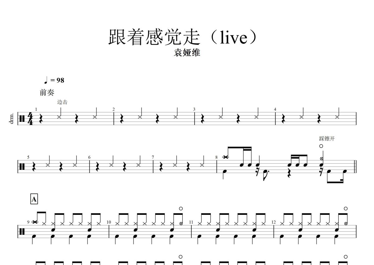 袁娅维《跟着感觉走》鼓谱 - 架子鼓谱