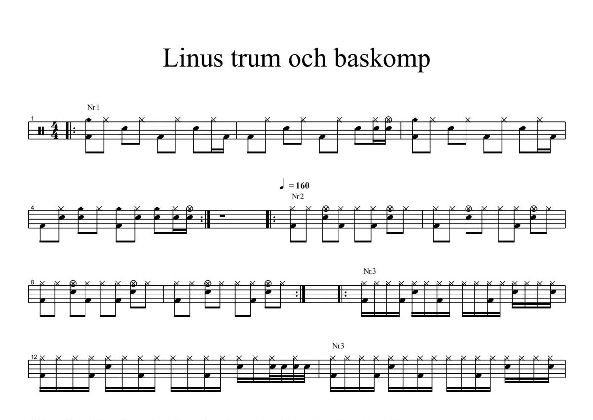 《加花节奏三》是英皇Rock School演唱的一首歌曲,这份鼓谱共有五张高清图谱,图谱由 @打鼓谱 编配上传,图谱使用五线谱编配,使用这份加花节奏三架子鼓谱,你将能够轻松地敲打出这首英皇Rock School的加花节奏三,快来尝试吧。英皇Rock School《加花节奏三》。