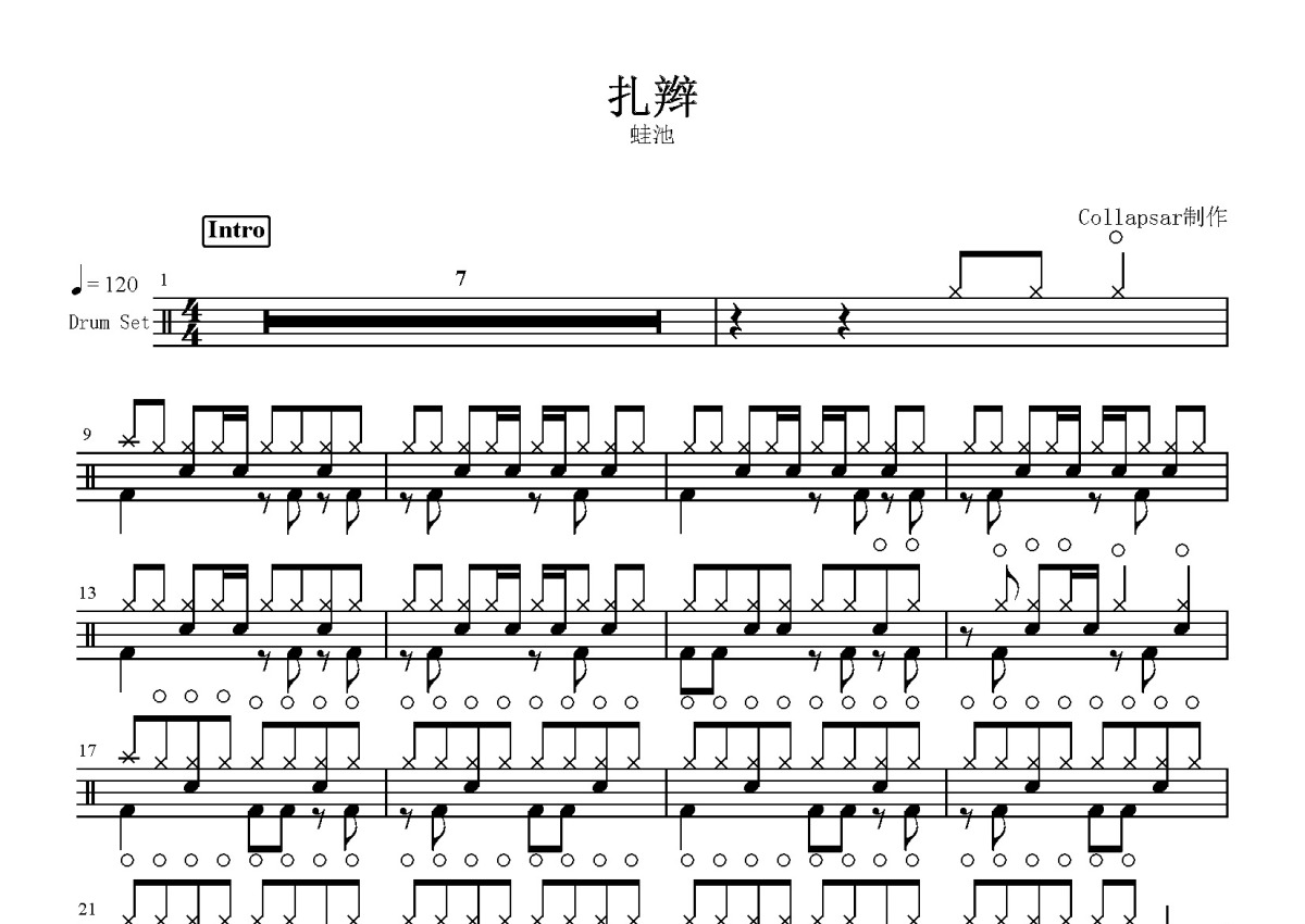 蛙池《扎辫》鼓谱 - 架子鼓谱