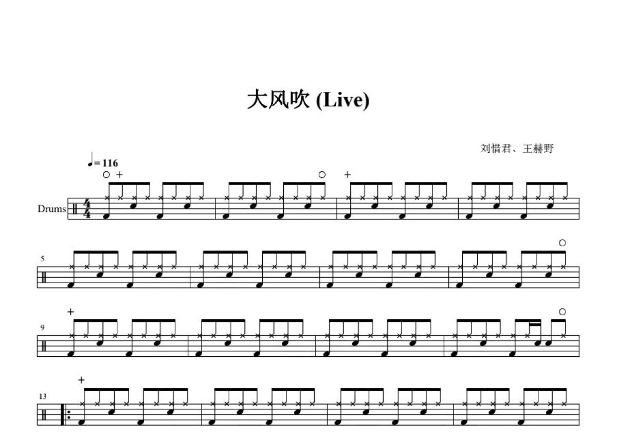 王赫野 刘惜君《大风吹》鼓谱 - 架子鼓谱