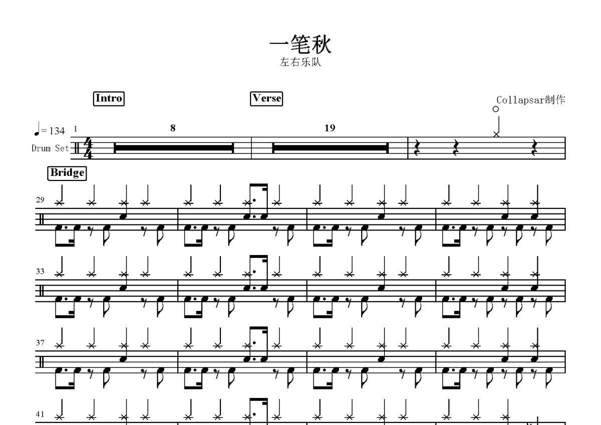 左右乐队《一笔秋》鼓谱 - 架子鼓谱